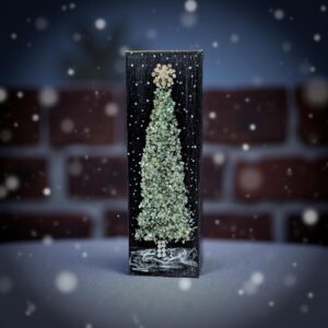 Frosted Diamond Fir 4″x12″x1″ Tree Shimmers with finely crushed, light-catching glass, a rhinestone snowflake topper, and a rhinestone-encrusted trunk, evoking a magnificent, icy winter night.